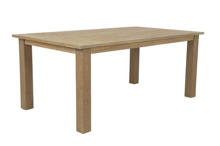 Jack Patio's Coastal Teak Dining Table is a beautifully contemporary take on classic teak furnishings. Our unique multi-step finish gives the natural wood a warm grey color, complementing our other collections for the perfectly curated coastal design.