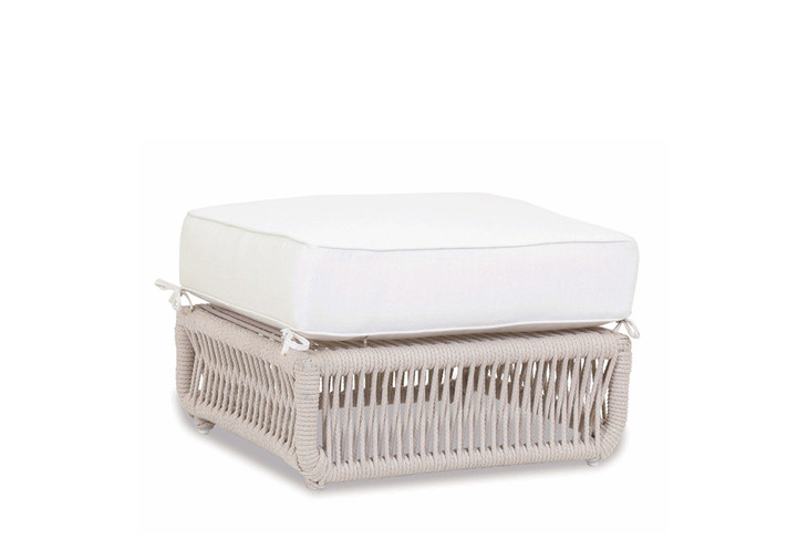 Featuring a plush 6" cushion, The Dana Ottoman is styled with a box frame expertly wrapped in premium all-weather olefin rope in natural Linen.